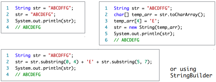 값의 변경은 불가능하지만, 새 String을 만들어 바꿀 수는 있다.