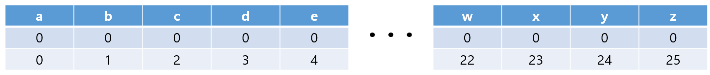 첫번째 행은 a,b,c...처럼 알파벳의 위치로 생각하는 부분