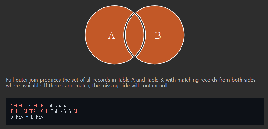 -- left join, right join 모두 department_id 컬럼이 두 테이블이 공통으로 가지고 있는 값에 해당하므로 공통 부분만큼만 출력(10 ~ 110)