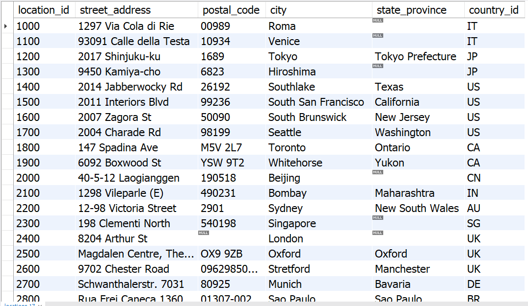 사용될 테이블은 총 4가지로, employees, departments, locations, jobs이다.