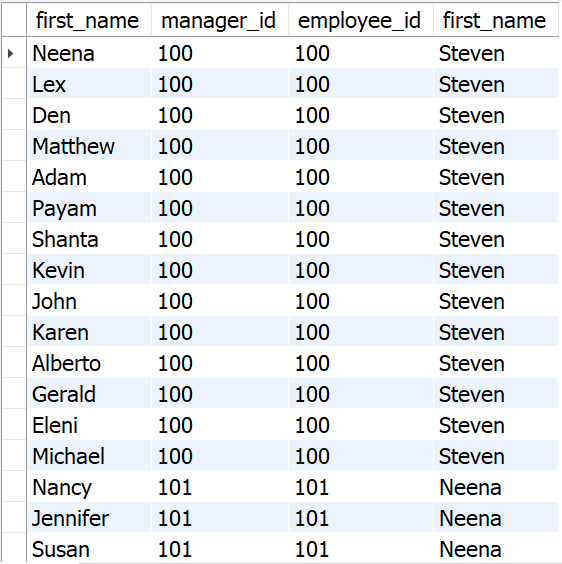 -- 문제6) 사원이름과 그 사원의 관리자 이름을 출력하라