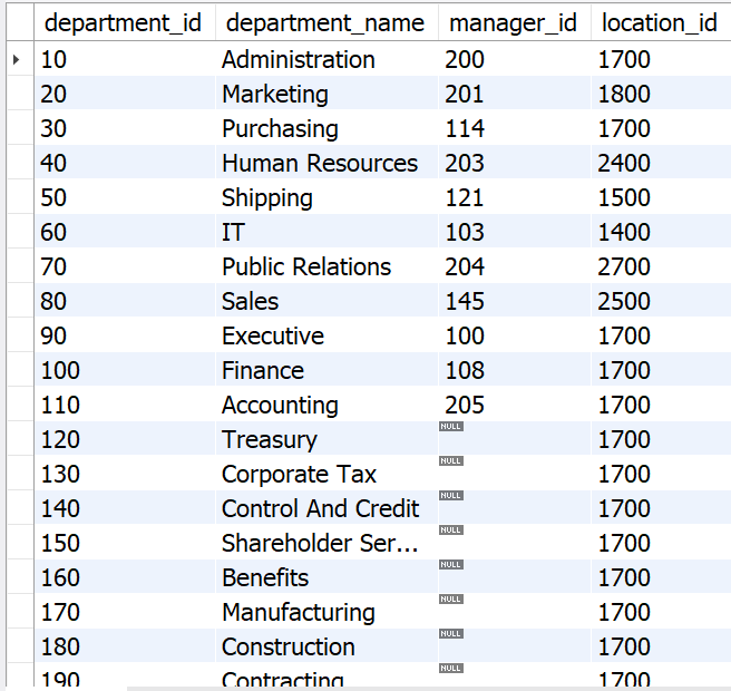 -- left join, right join 모두 department_id 컬럼이 두 테이블이 공통으로 가지고 있는 값에 해당하므로 공통 부분만큼만 출력(10 ~ 110)