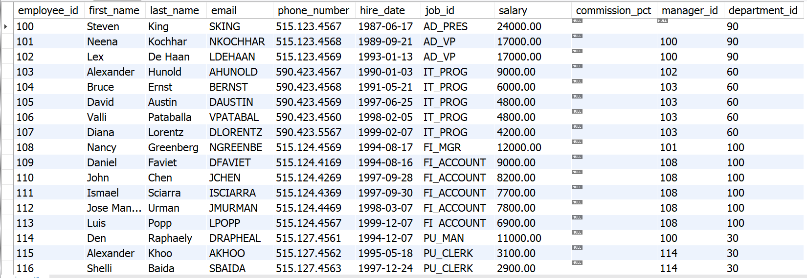 사용될 테이블은 총 4가지로, employees, departments, locations, jobs이다.