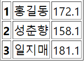 { "number":2, "name":"성춘향", "height":158.1 },