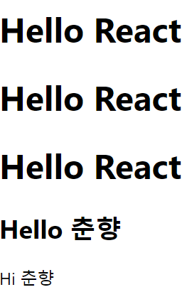 <MessageOne name="춘향" /> {/* component */}