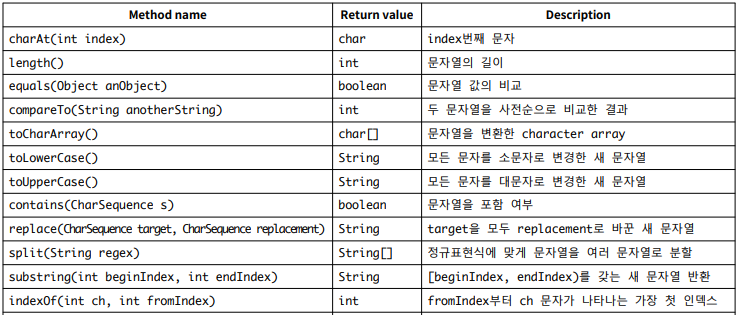 String 클래스가 제공하는 메서드들은 다양하지만, 그중 일부를 정리하자면,